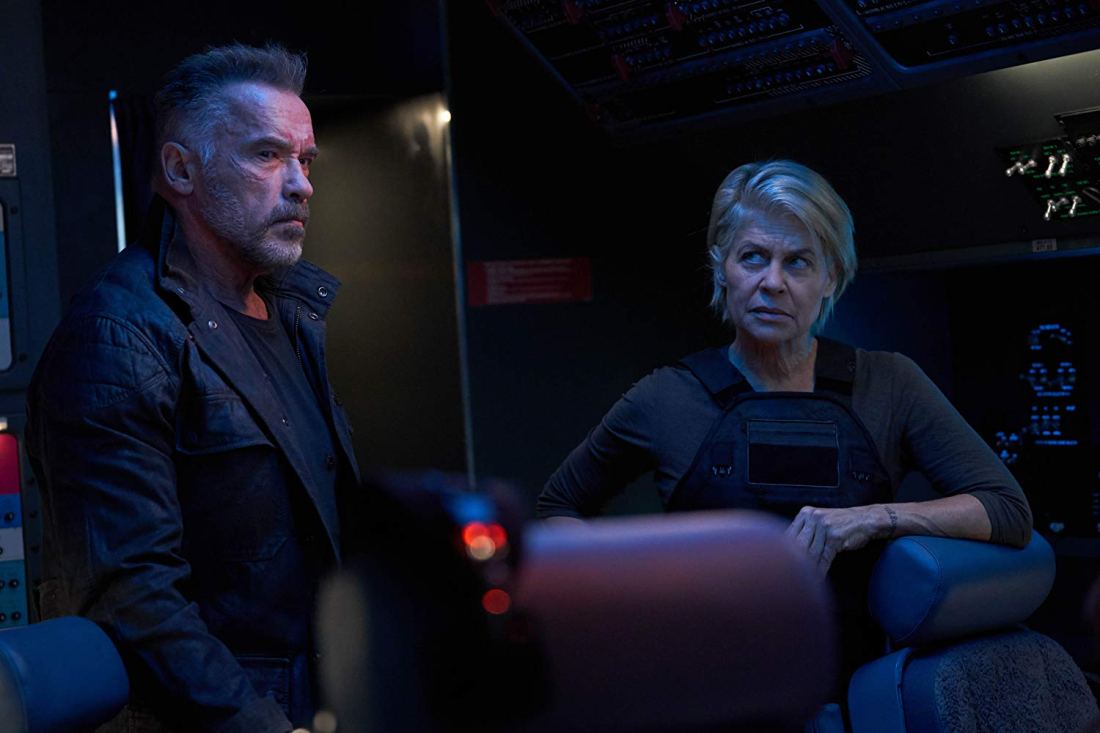 “Terminator: Dark Fate” is the continuing saga of the “Terminator” series. In this installment, Grace (played by Mackenzie Davis) is sent back to time to protect Dani (played by Natalia Reyes) from REV-9 (played by Gabriel Luna). The REV-9 is also sent back in time but to kill Dani. Grace and Dani are also joined by Sarah Connor and T-800, (played by Linda Hamilton and Arnold Schwarzenegger, respectively).
